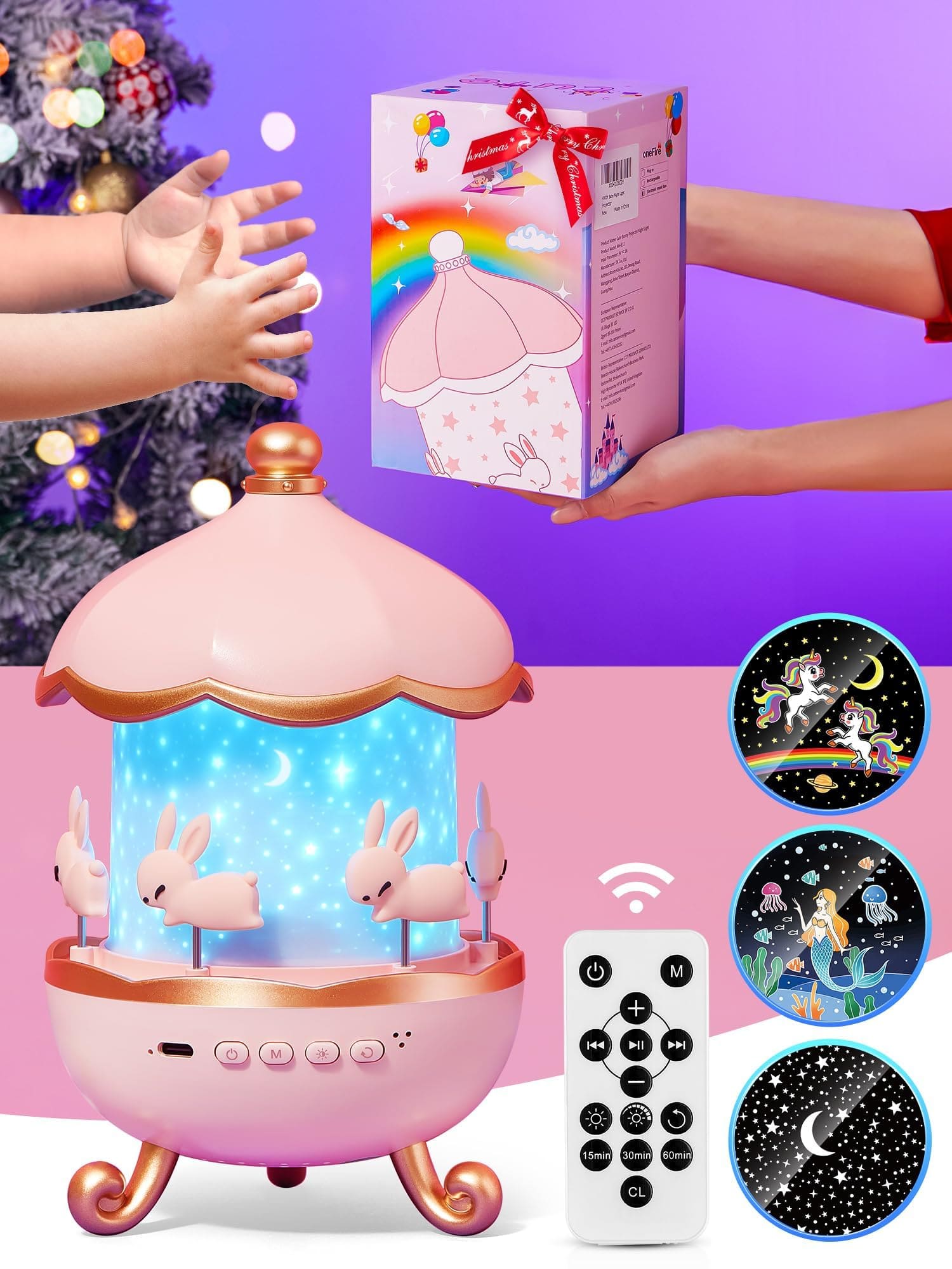 🎁 3 funciones en 1: proyector, luz de noche, caja de música