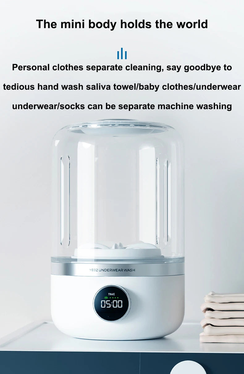 🔥 Tu aliada perfecta para el cuidado diario de tu ropa íntima: lava fácilmente ropa interior y calcetines con una mini lavadora portátil, automática y sin cables.