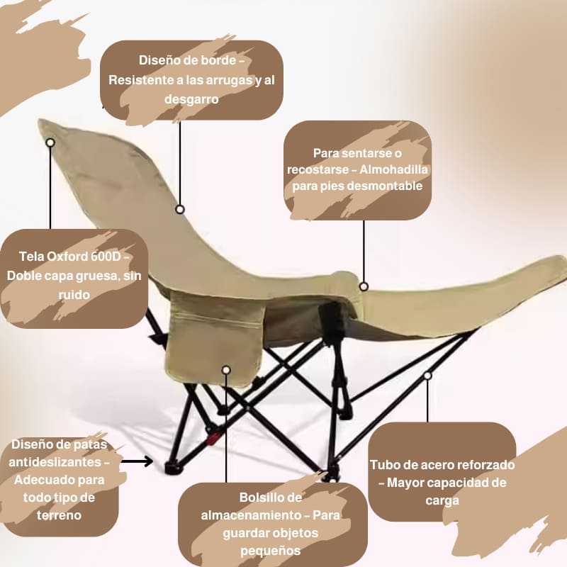 ✨ Disfruta de una experiencia de relajación única con esta 🪑 silla de camping de lujo, diseñada cuidadosamente para ofrecerte el máximo confort y soporte.